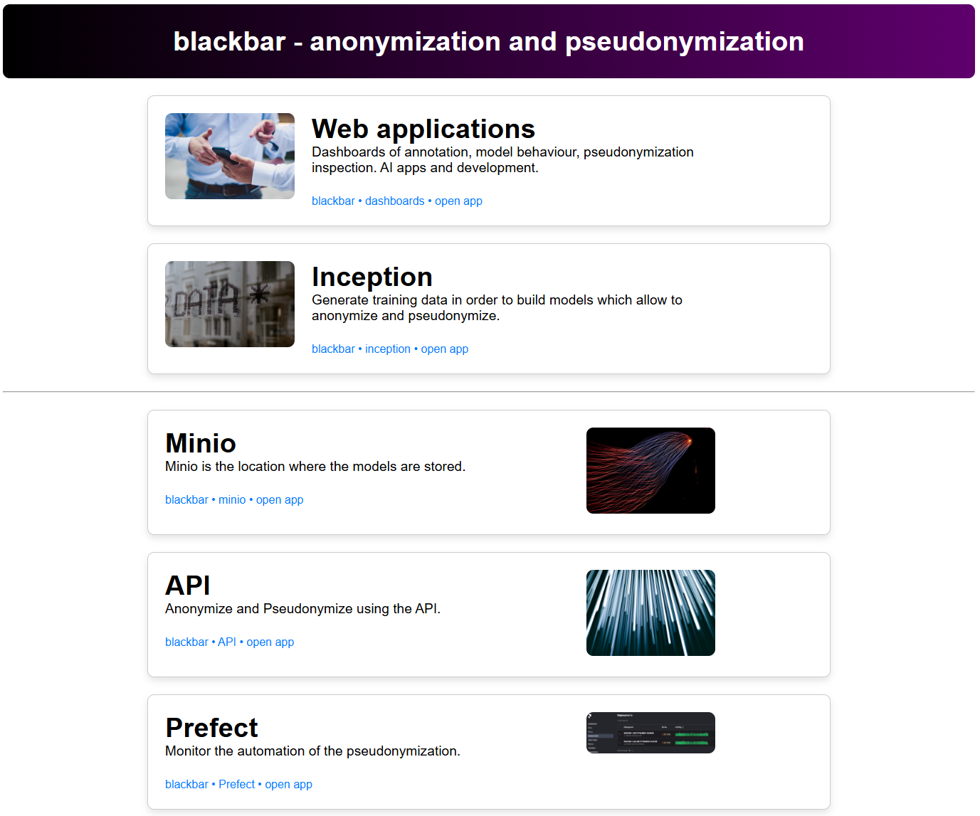 ghcr.io/bnosac/blackbar-inception-minioBy default that creates an admin user which can then create further users. If you want integrated OIDC authentication, as shown below, you can set the environment variable INCEPTION_AUTHENTICATION to preauth in .env, indicate in which header name the remote principal user will be passed on (INCEPTION_PREAUTH_HEADER) and provide 1 user name as admin user (INCEPTION_PREAUTH_ADMIN) - this is the user from your OIDC integration.